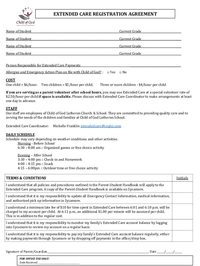 Get the free Extended Care Registration Agreement