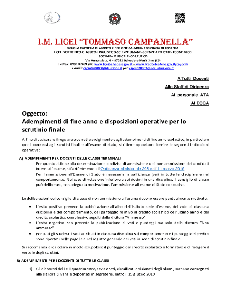 Quali informazioni devono essere riportate su licei tommaso campanella?