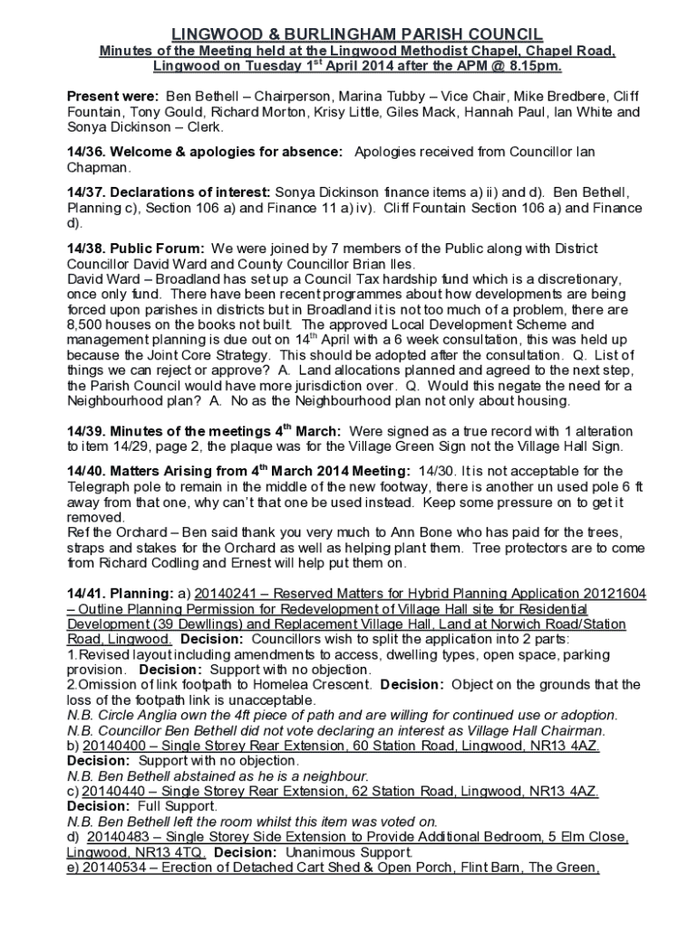 Get the free Lingwood & Burlingham Parish Council Minutes