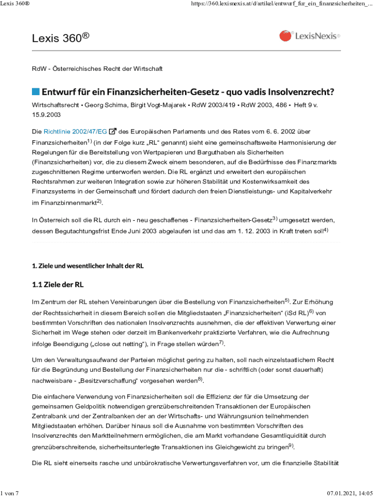 Lexis 3601 on 7https://360.lexisnexis.at/d/artikel/entwurf_fur_ein_finanzsicherheiten_... Lexis 360