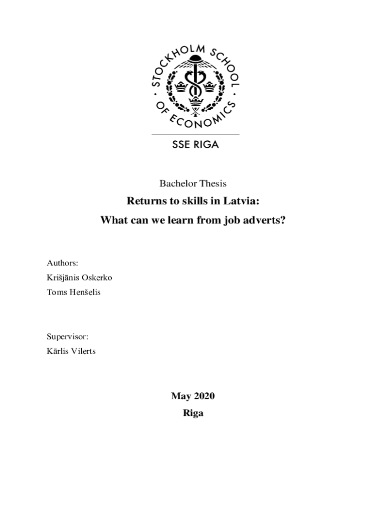 Bachelor ThesisReturns to skills in Latvia: What can we learn from job adverts?Authors: Krijnis Oskerko Toms HenelisSupervisor: Krlis VilertsMay 2020 RigaCOPYRIGHT DECLARATION Names of the authors in full: Krijnis Oskerko, Toms HenelisTitle of the Thesis: Returns to skills in Latvia: What can we learn from job adverts?We hereby certify that the abovenamed thesis is entirely the work of the persons named below, and that all materials, sources and data used in the thesis have been duly referenced