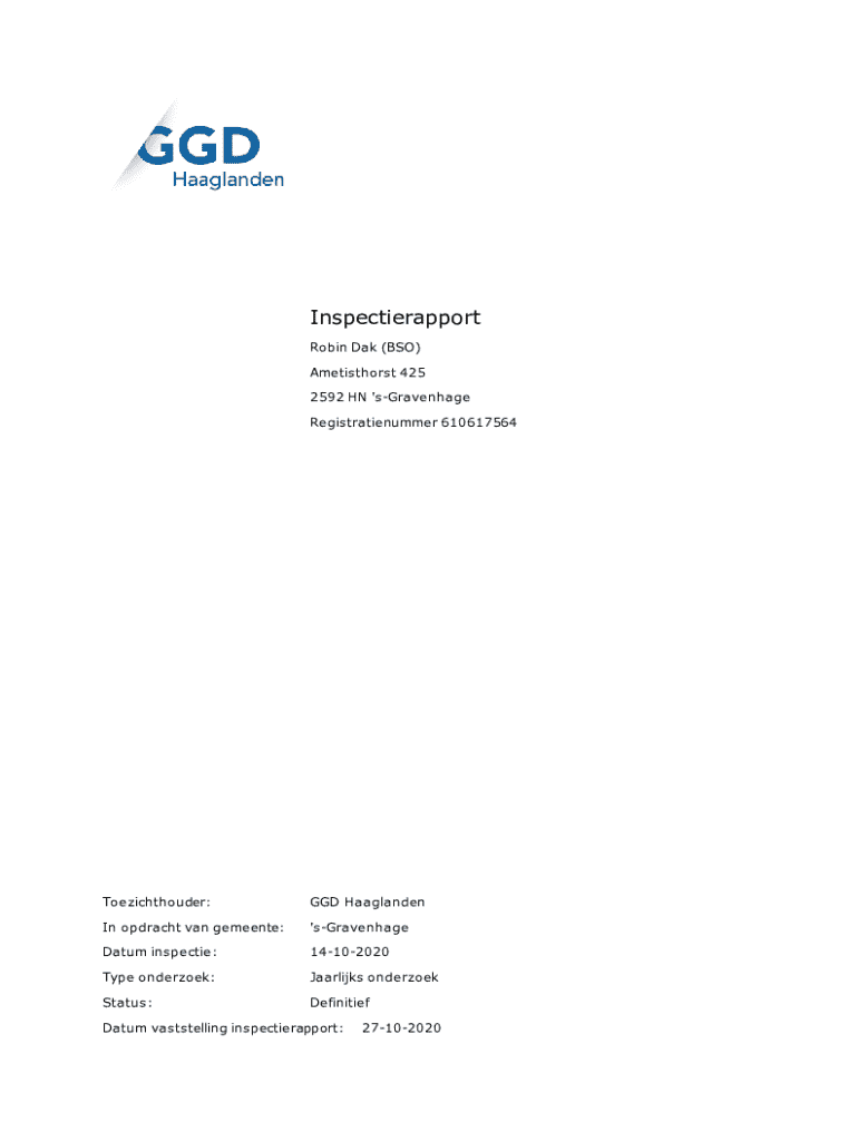 Registratienummer 610617564Toezichthouder:GOD HaaglandenIn Oprah van generate:\'sGravenhageDatum inspection:14102020Type undertook:Jaarlijks