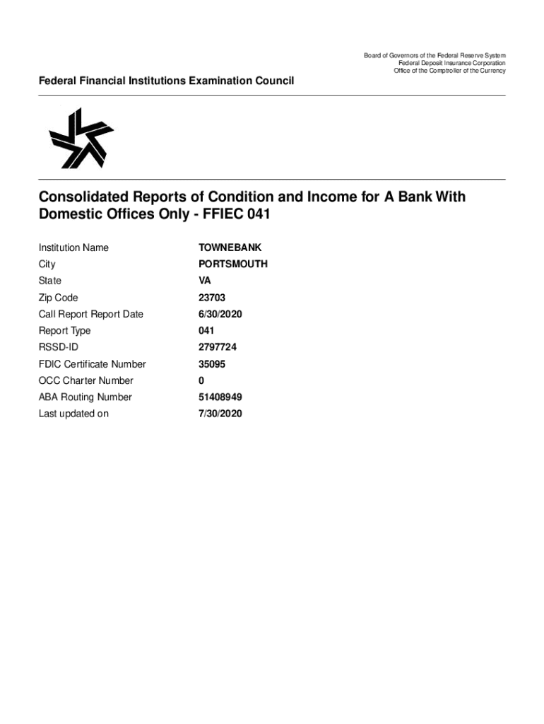 Board of Governors of the Federal Reserve System Federal Deposit Insurance Corporation Office of the Comptroller of the Currency Federal Financial Institutions Examination CouncilConsolidated Reports