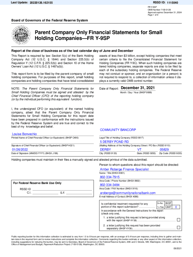 Approval expires December 31, 2024-Page 1 of 9Board of Governors of the Federal Reserve Stepparent Company Only Financial Statements