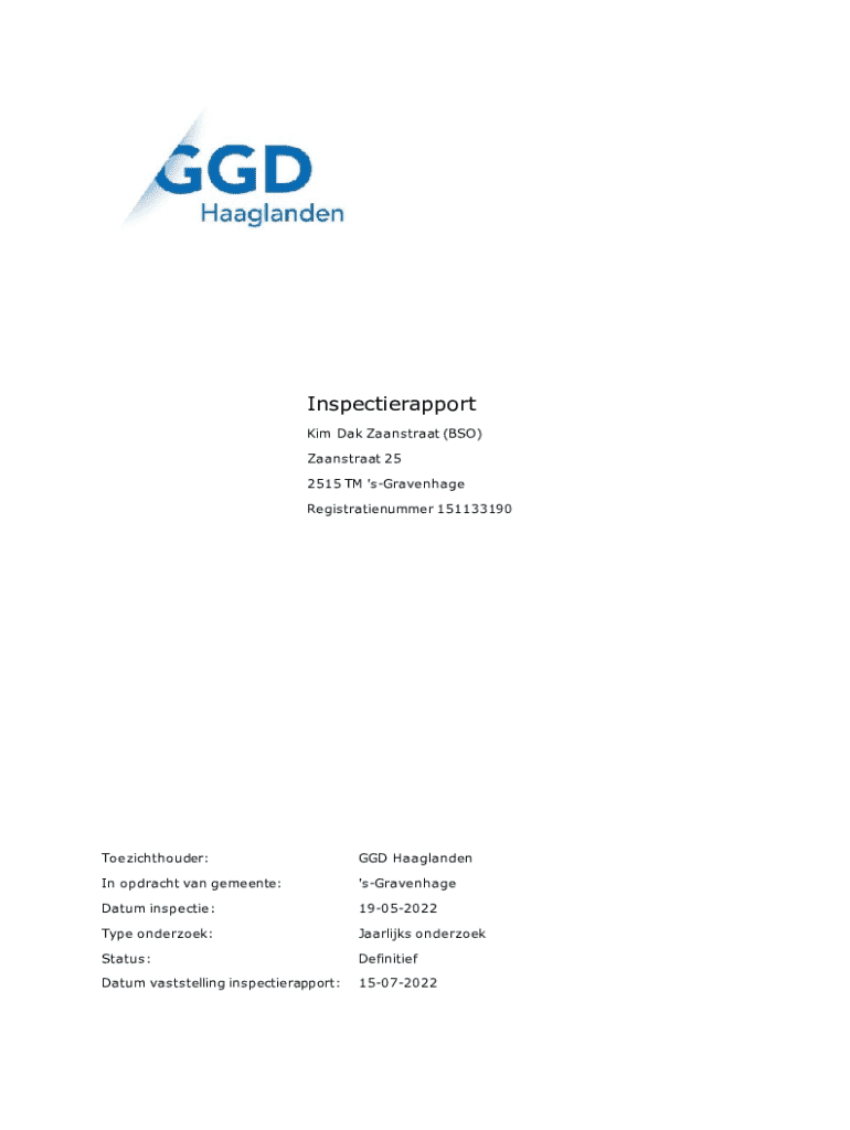 Registratienummer 151133190Toezichthouder:GOD HaaglandenIn Oprah van generate:\'sGravenhageDatum inspection:19052022Type undertook:Jaarlijks