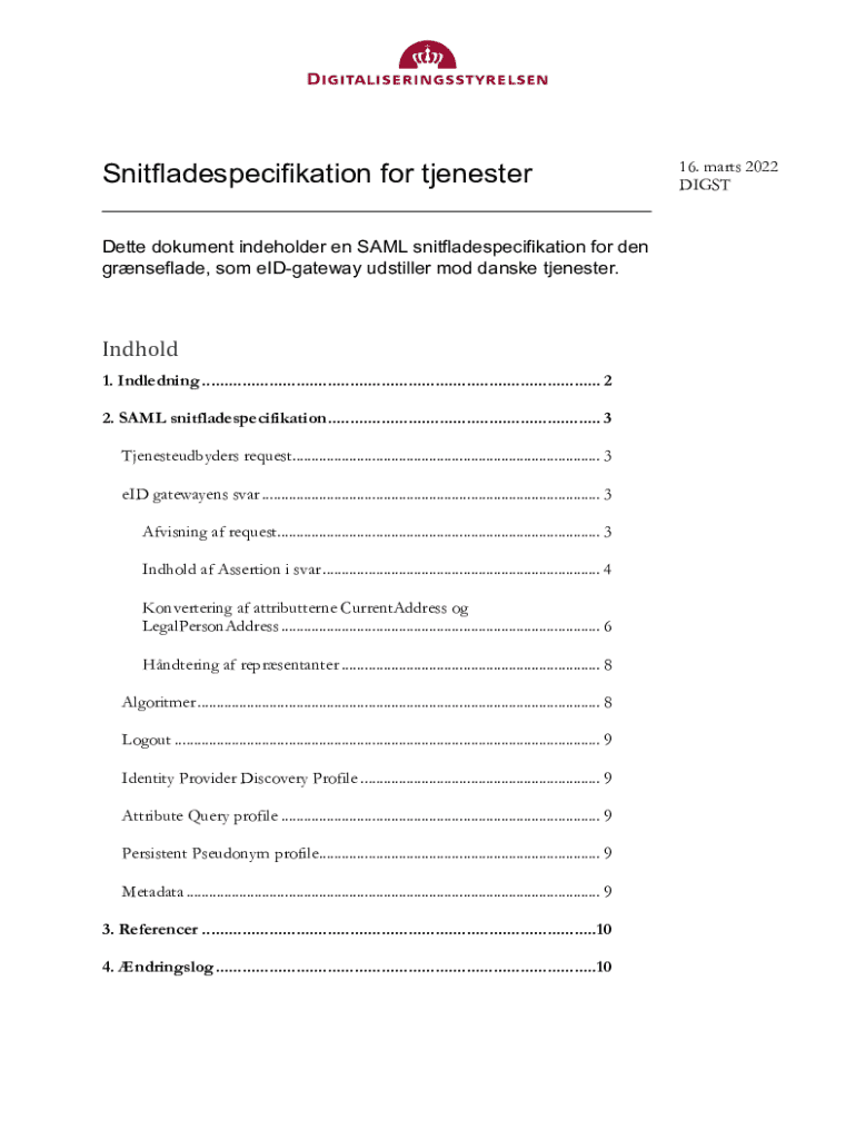 Snitfladespecifikation for semester Bette document titleholder en SAML snitfladespecifikation for den grnseflade, some gateway distiller mod dance semester. Indhold 1. Including .........................................................................................