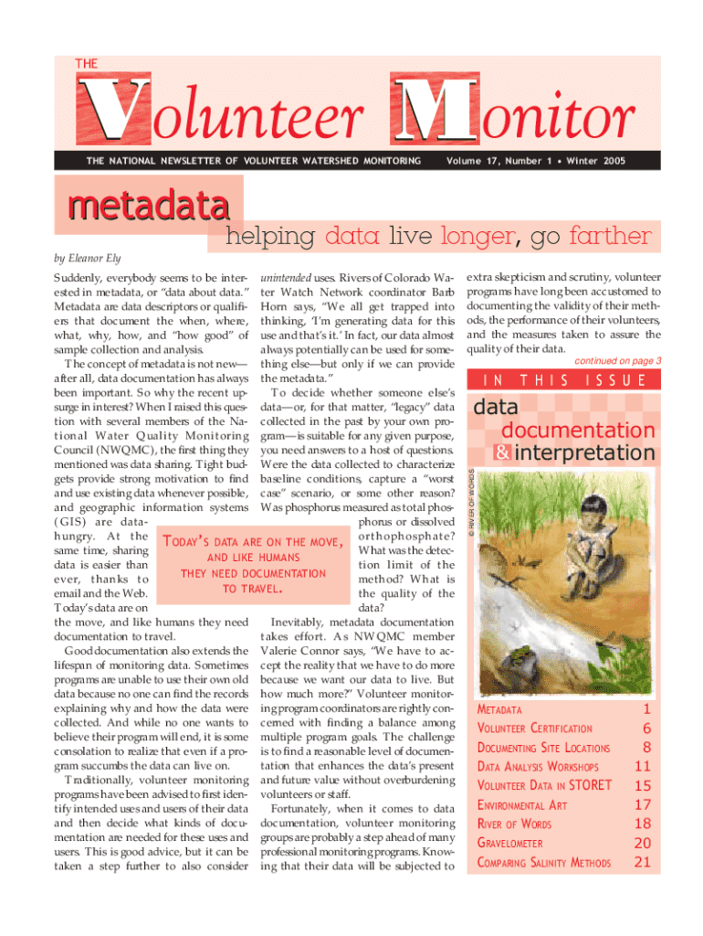 THETHE NATIONAL NEWSLETTER OF VOLUNTEER WATERSHED MONITORINGVolume 17, Number 1 Winter 2005metadatahelping data live longer, go fartherby Eleanor Elyextra skepticism and scrutiny, volunteer programs