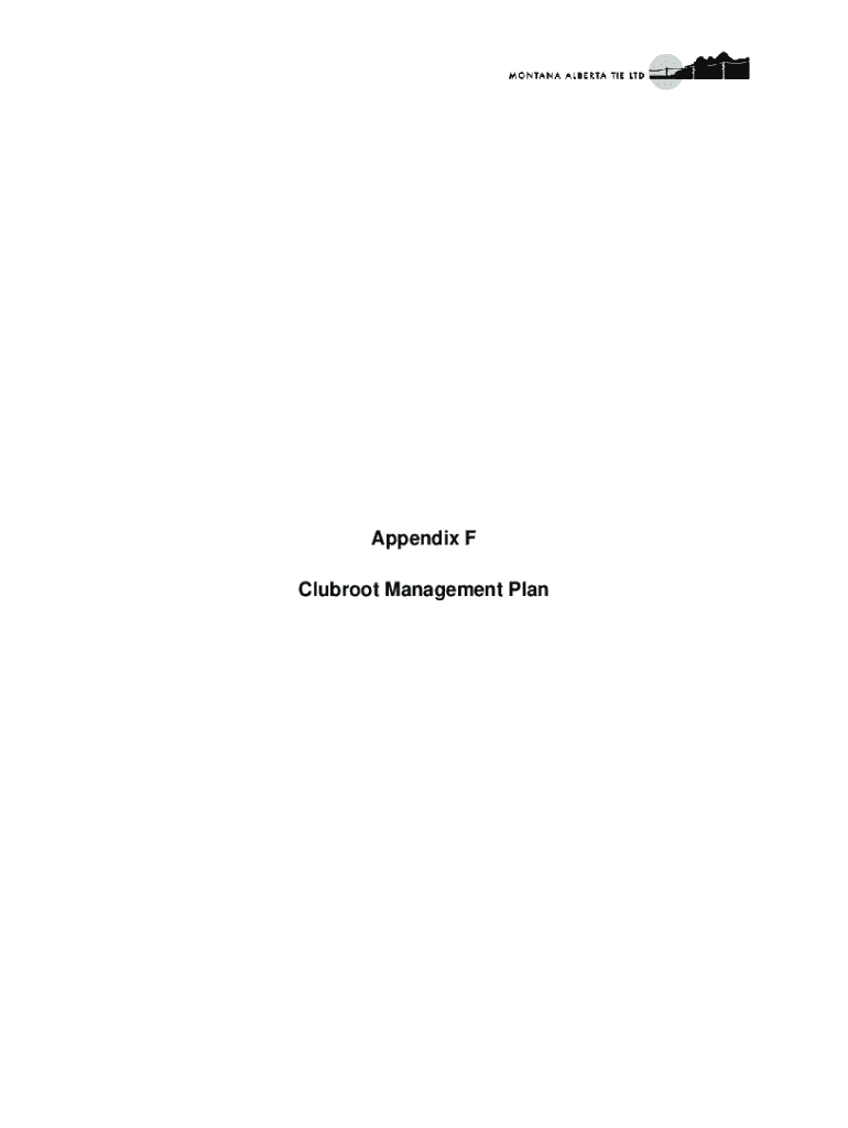Appendix F Clubroot Management PlanEnvironmental Protection Plan Montana Alberta Tie Ltd. International Power Line June 2010TABLE OF CONTENTS PAGE 1.0OBJECTIVE ...................................................................................................................F12.0LAND