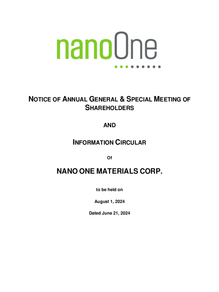 Get essential details about Nano One Materials Corp.\'s Annual General & Special Meeting on August 1, 2024. Learn about voting instructions and shareholder rights.