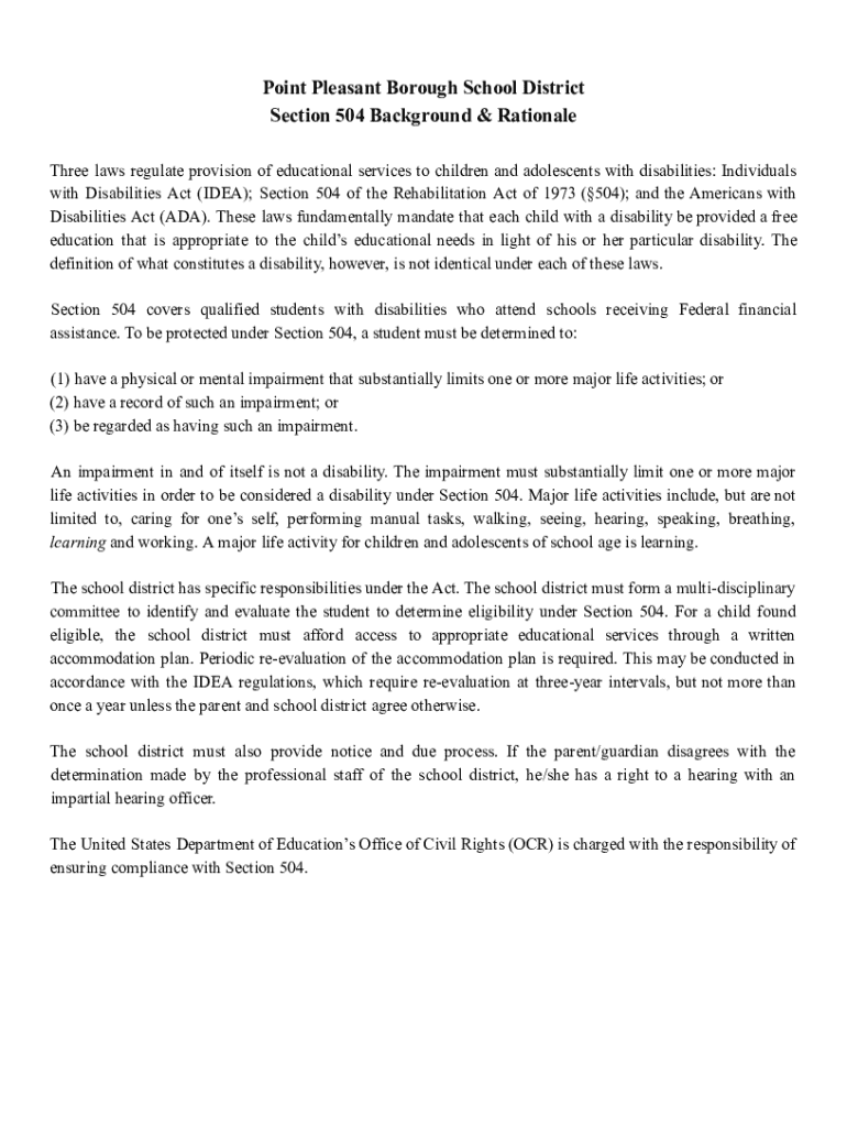 Get the free Point Pleasant Borough School District Section 504 Documents