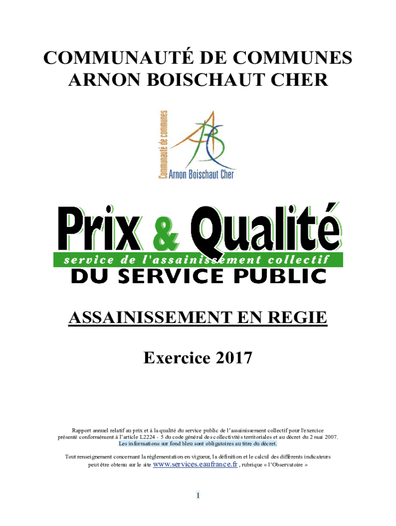 Exercise 2017Rapport annual related AU PRI et la quality Du service public de lassainissement collect if pour l\'exercise