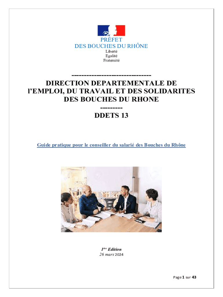 PRFET DES BOUCHES DU RHNE Libert Egalit FraternitDIRECTION DEPARTEMENTALE DE lEMPLOI, DU TRAVAIL ET DES SOLIDARITES DES BOUCHES DU RHONE DDETS 13Guide pratique pour le conseiller du salari des Bouches