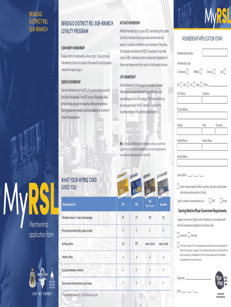 Fill out your bendigo district rsl sub-branch online with pdfFiller!