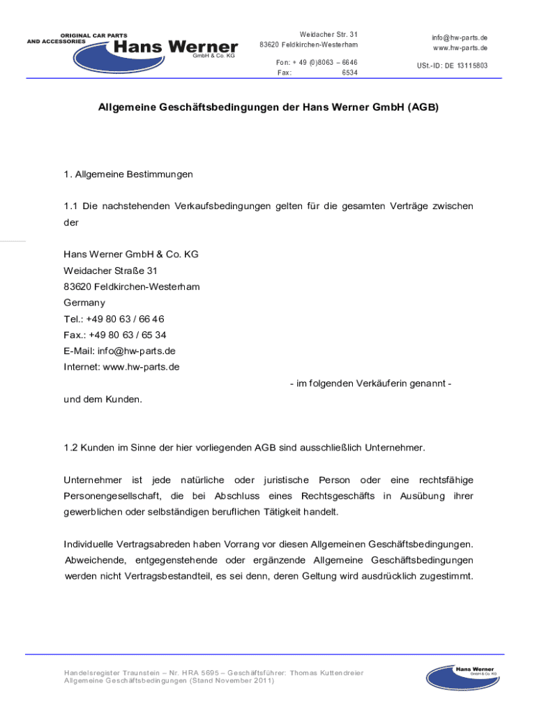 6534USt.ID: DE 13115803Allgemeine Geschftsbedingungen her Hans Werner GmbH (AGB)1. Allegiance Bestimmungen