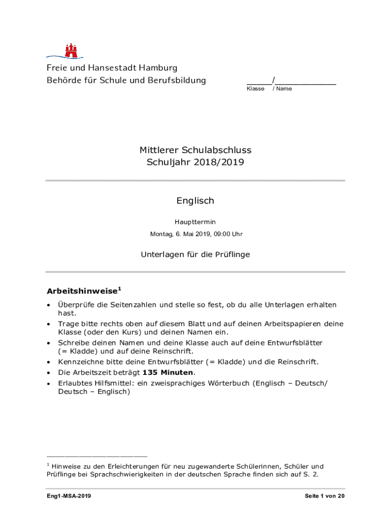 Montag, 6. Mai 2019, 09:00 UhrUnterlagen for die PrflingeArbeitshinweise1