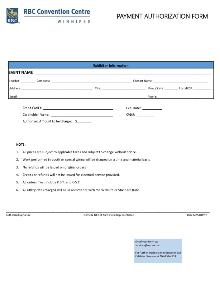To fill out a payment authorization form, you need to provide your personal information, bank account or credit card details, the amount to be authorized, and your signature to confirm the authorization.