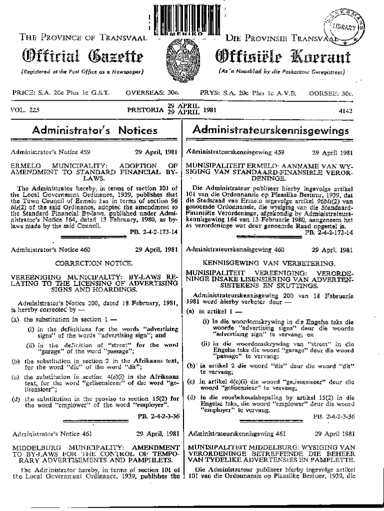 Get the free Dm PROVINSIE TRANSV - archive opengazettes org