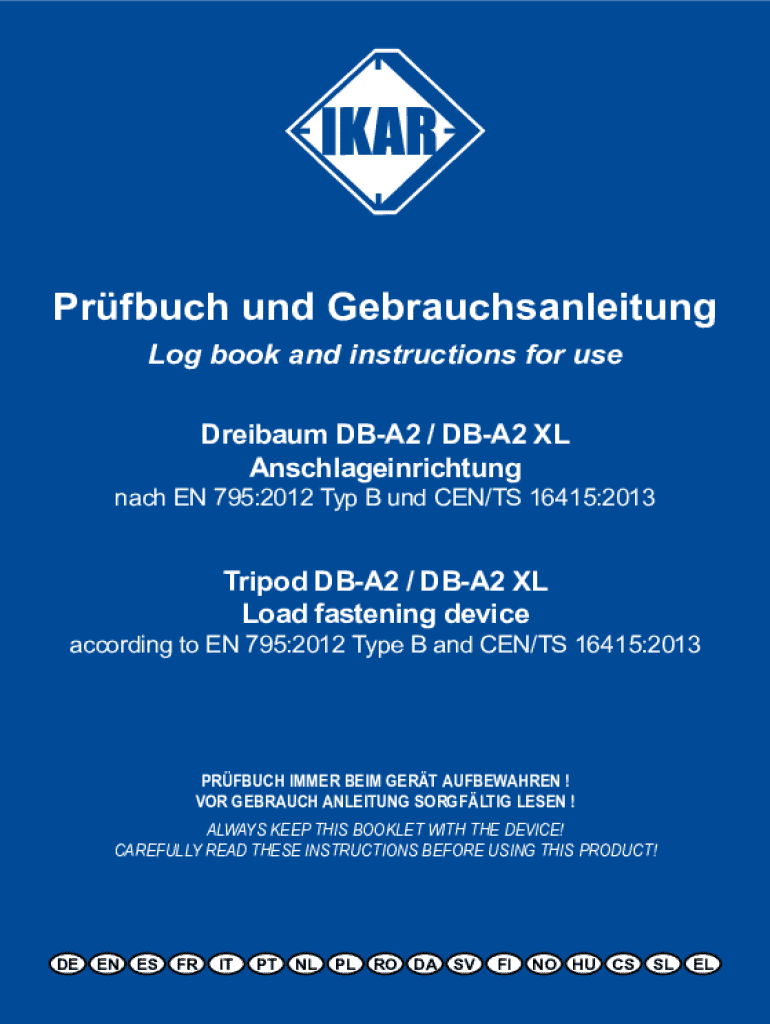 Anschlageinrichtungnach EN 795:2012 Top B UND CEN/TS 16415:2013Tripod DBA2 / DBA2 XL