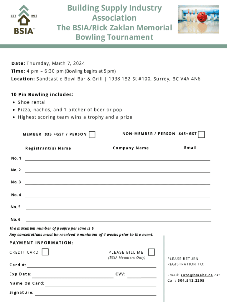 Fill out your copy of bowling tournament online with pdfFiller!