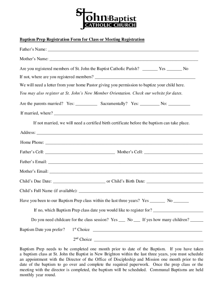 Get the free Baptism Prep Registration Form for Class or Meeting ...
