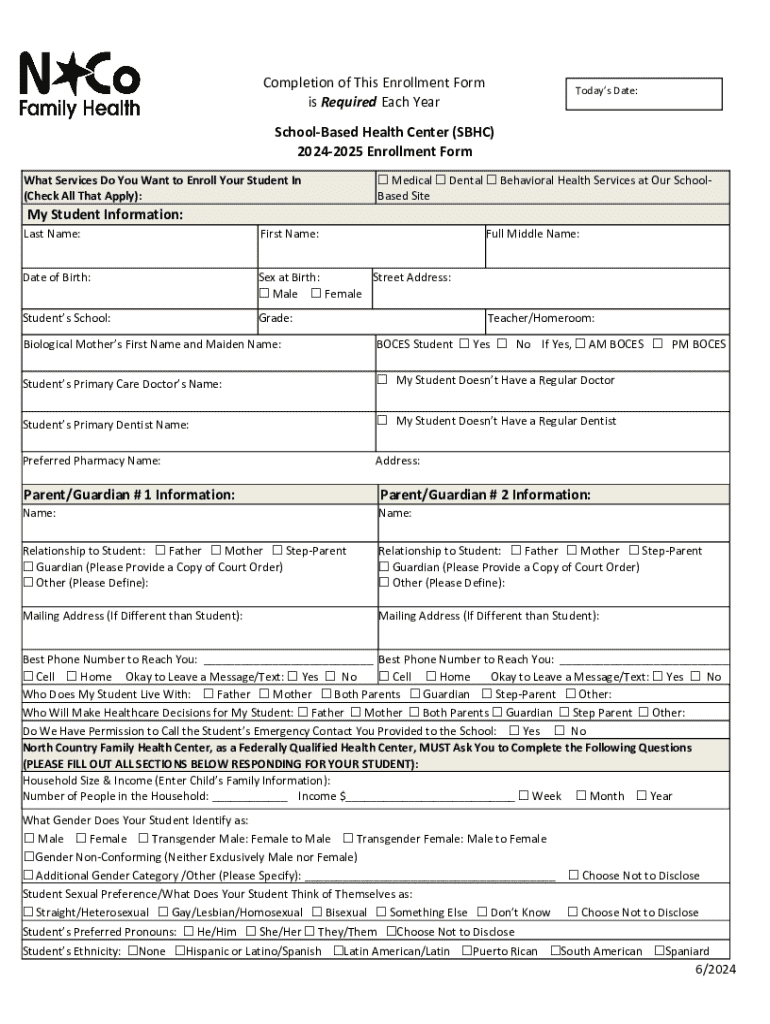 School-Based Health Center Enrollment is not the form you're looking for?Search for another form here.