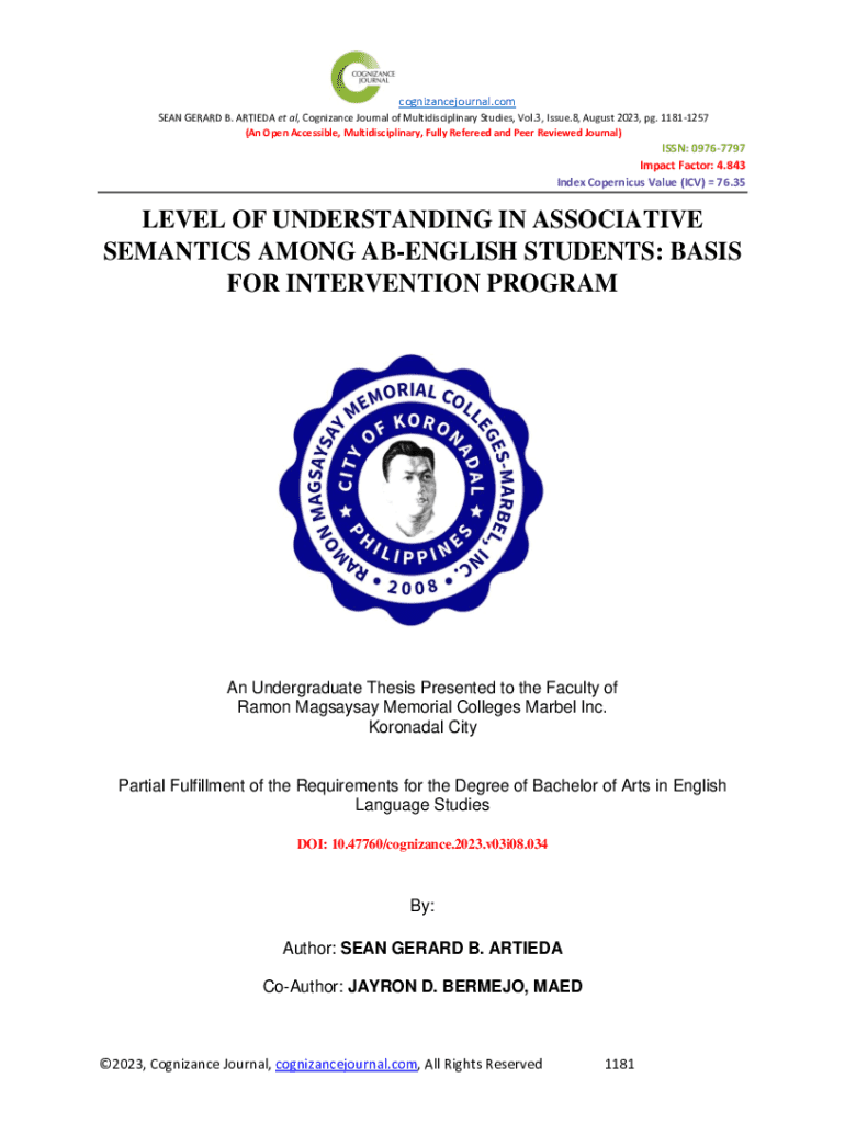 Get the free LEVEL OF UNDERSTANDING IN ASSOCIATIVE SEMANTICS AMONG AB-ENGLISH STUDENTS