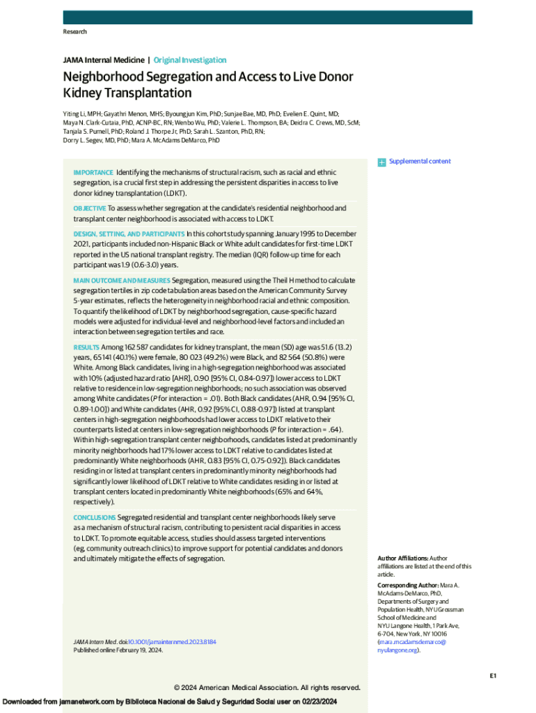 ResearchGate Internal Medicine | Original InvestigationNeighborhood Segregation and Access to Live Donor