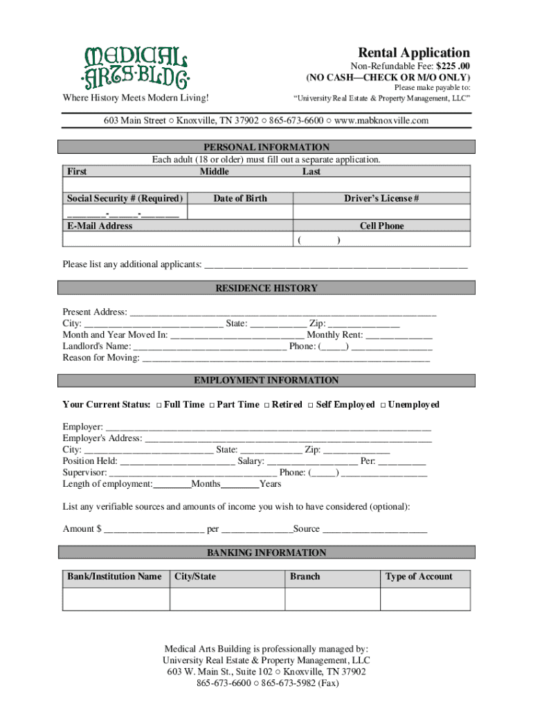 Complete the 2023 Rental Application for the Medical Arts Building managed by University Real Estate & Property Management. Non-refundable fee applies.