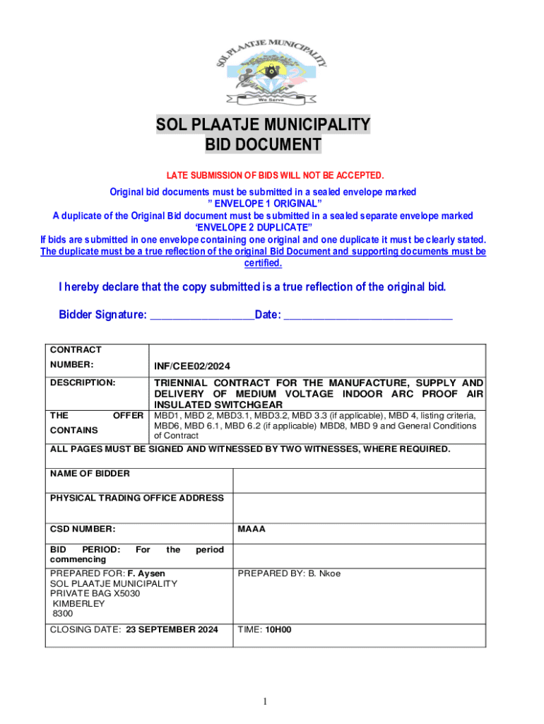 Get the free Sol Plaatje Municipality Bid Document