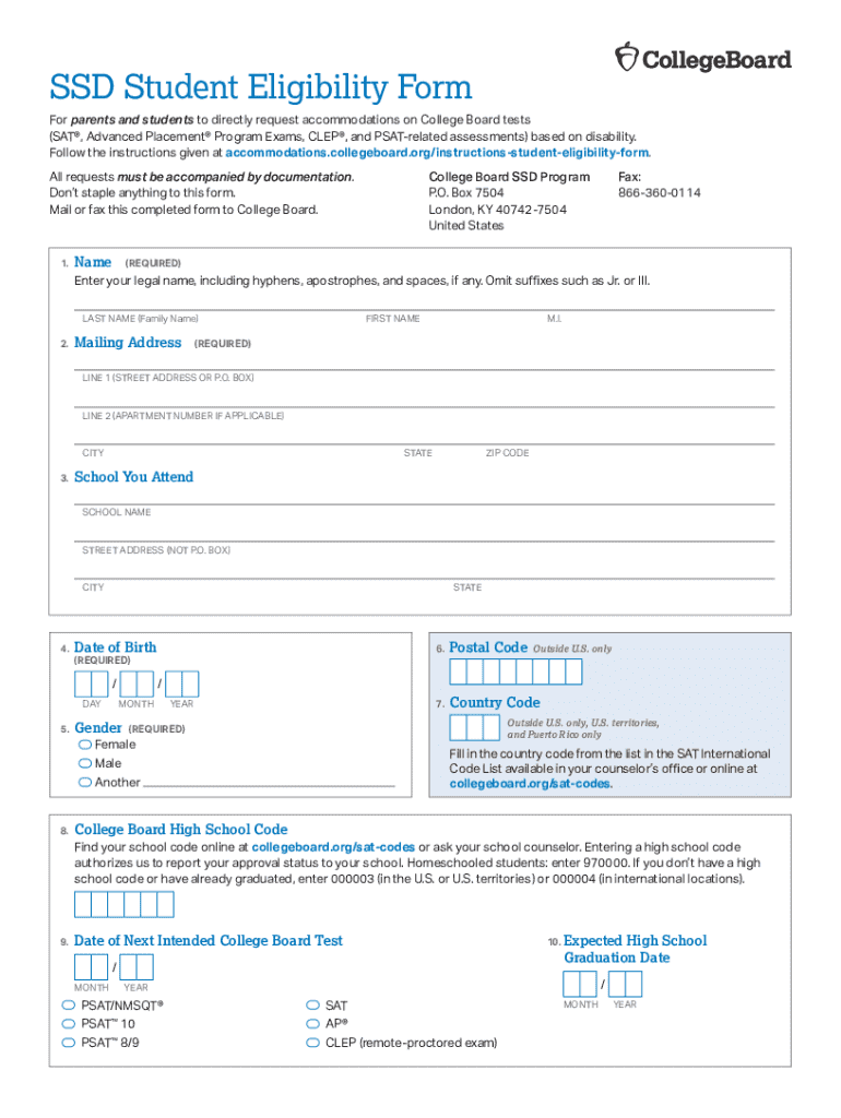 To fill out the SSD student eligibility form, students should provide personal information, details of their disability, and any relevant documentation or assessments from healthcare professionals that support their request for accommodations.