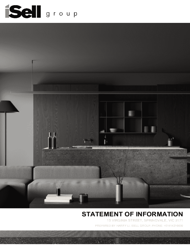 STATEMENT OF INFORMATION 15 VIRGINIA STREET, SPRINGVALE, VIC 3171 PREPARED BY HARRY LI, ISELL GROUP, PHONE: +61414216699Statement of InformationSingle residential property located in the Melbourne