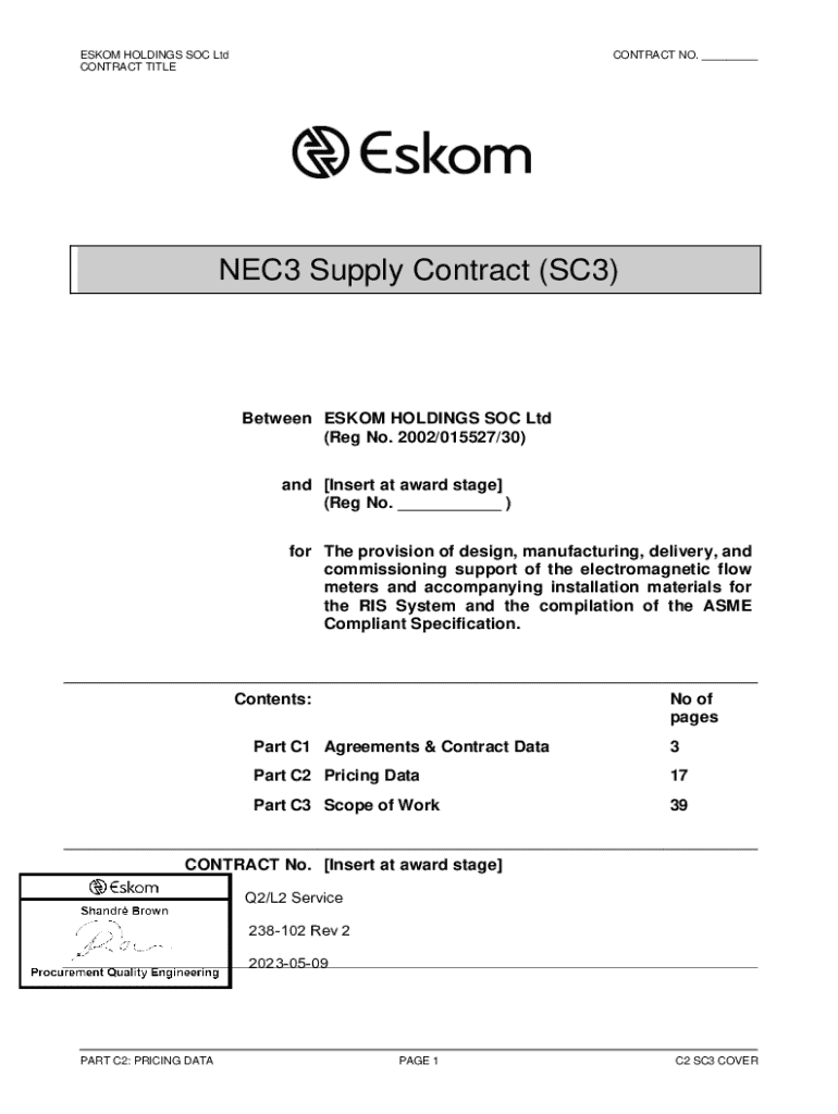 CONTRACT TITLECONTRACT NO. ___NEC3 Supply Contract (SC3)Between EPSOM HOLDINGS SOC Ltd