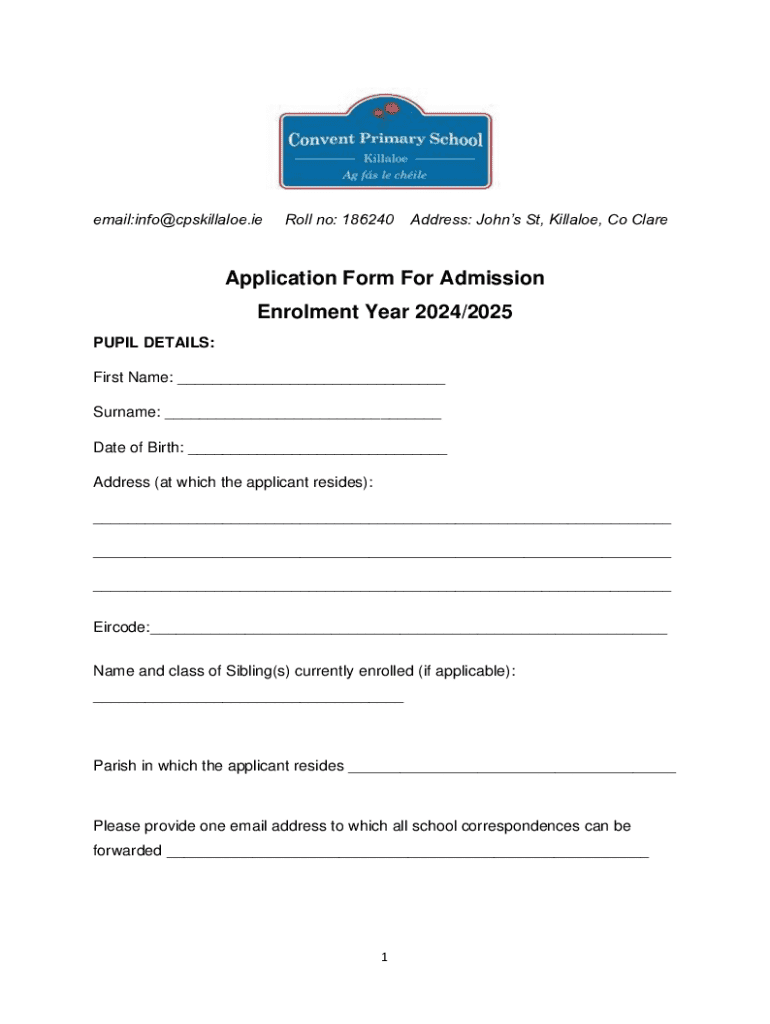 Email:info@cpskillaloe.roll no: 186240Address: Johns St, Kill aloe, Co Reapplication Form For Admission