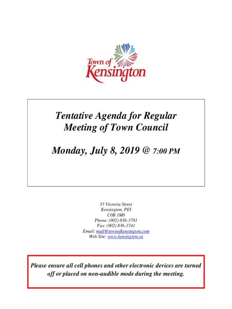 View the July 8, 2019 agenda for the Kensington Town Council meeting, including key discussions and decisions on community funding and council reports.