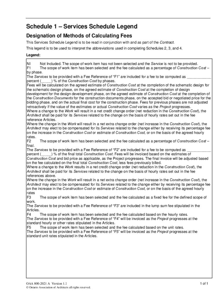 OAK 800 2021 A Version 1.1, Mar. 2023Contract Attachments for Standard Short Form of Contract for Architects Services Ontario Association of Architects all rights reserved. Copyright Notice This document