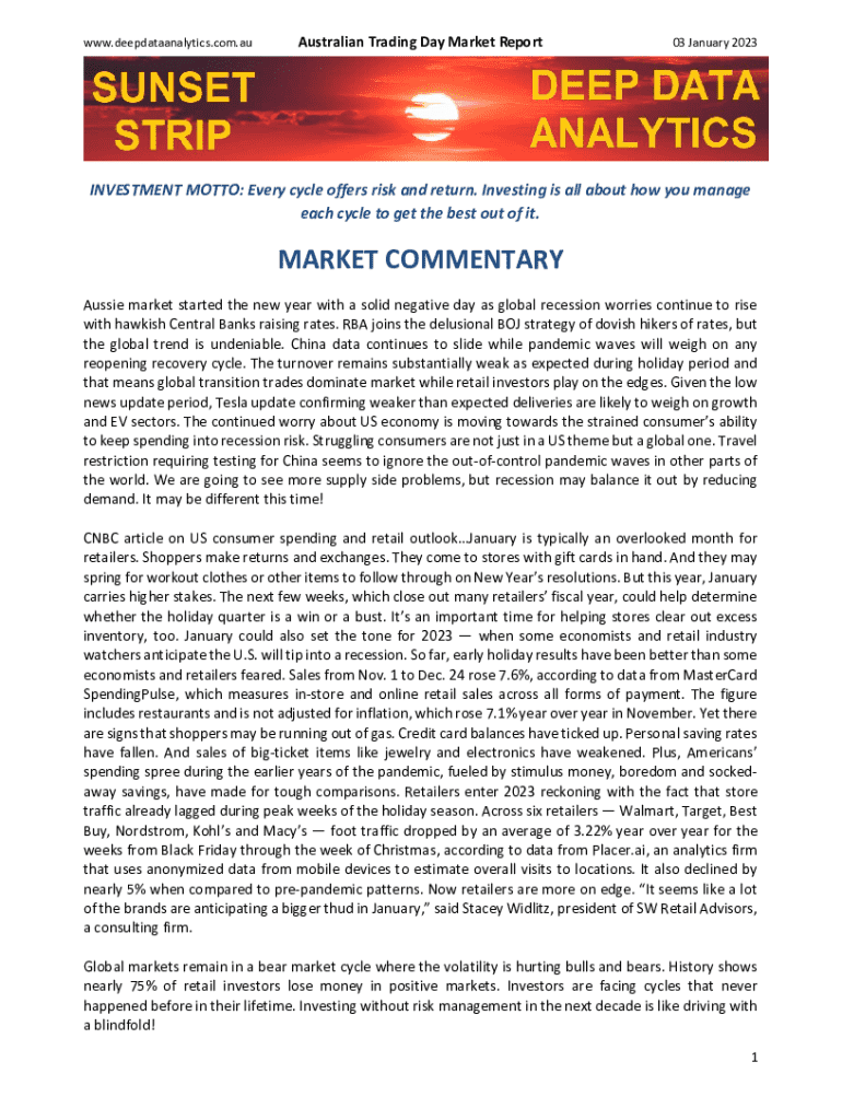 WWW.deepdataanalytics.com.Australian Trading Day Market Report03 January 2023INVESTMENT MOTTO: Every cycle offers risk and return. Investing is all about how you manage each cycle to get the best