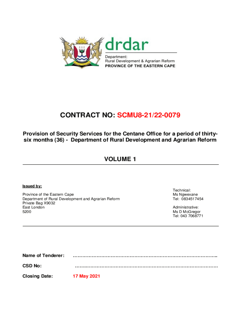 Provision of Security Services for the Pentane Office for a period of thirty six months (36) Department of Rural Development and Agrarian ReformVOLUME 1Issued by: