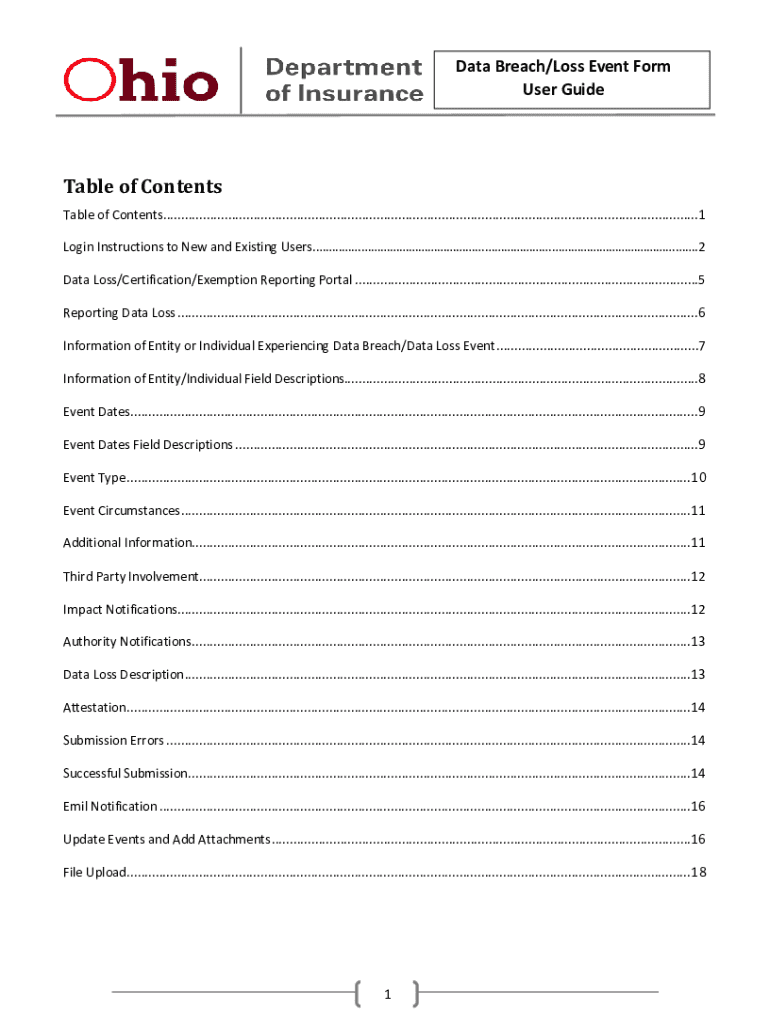 Data Breach/Loss Event Form User Suitable of Contents Table of Contents....................................................................................................................................................1