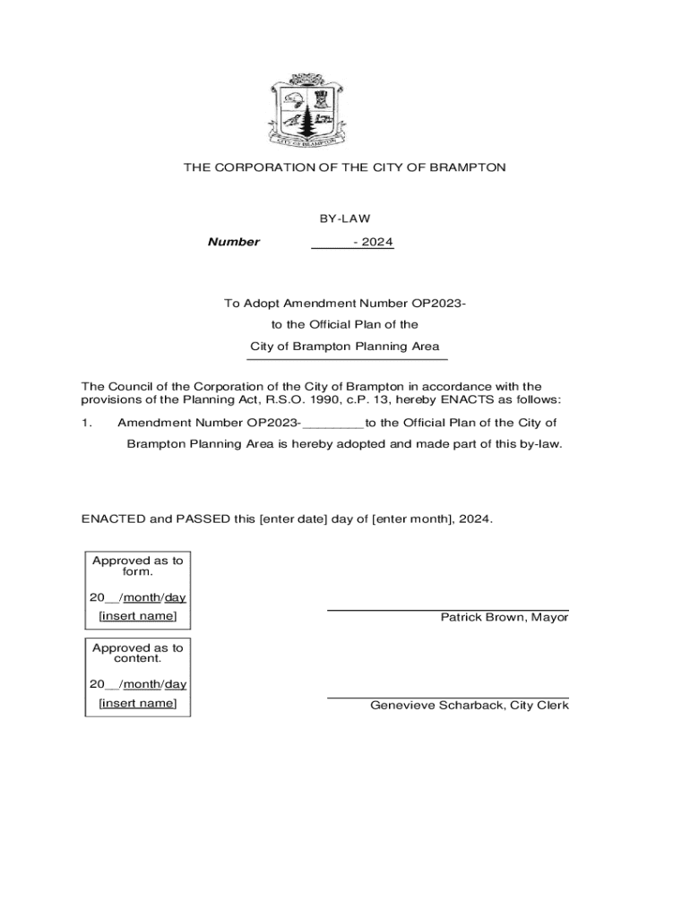 THE CORPORATION OF THE CITY OF BRAMPTONBYLAW Number 2024To Adopt Amendment Number OP2023to the Official Plan of the City of Brampton Planning Breathe Council of the Corporation of the City of Brampton