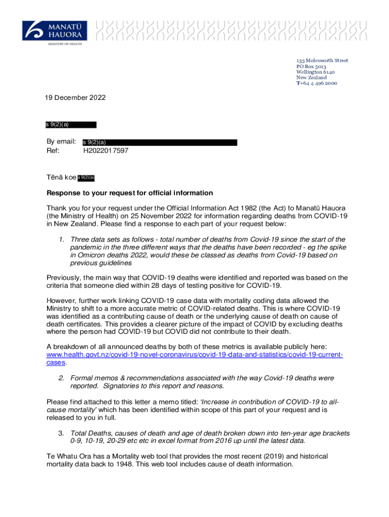 133 Molesworth Street PO Box 5013 Wellington 6140 New Zealand T+64 4 496 200019 December 2022s 9(2)(a)By email: s 9(2)(a) Ref: H2022017597Tn koe s 9(2)(a) Response to your request for official information