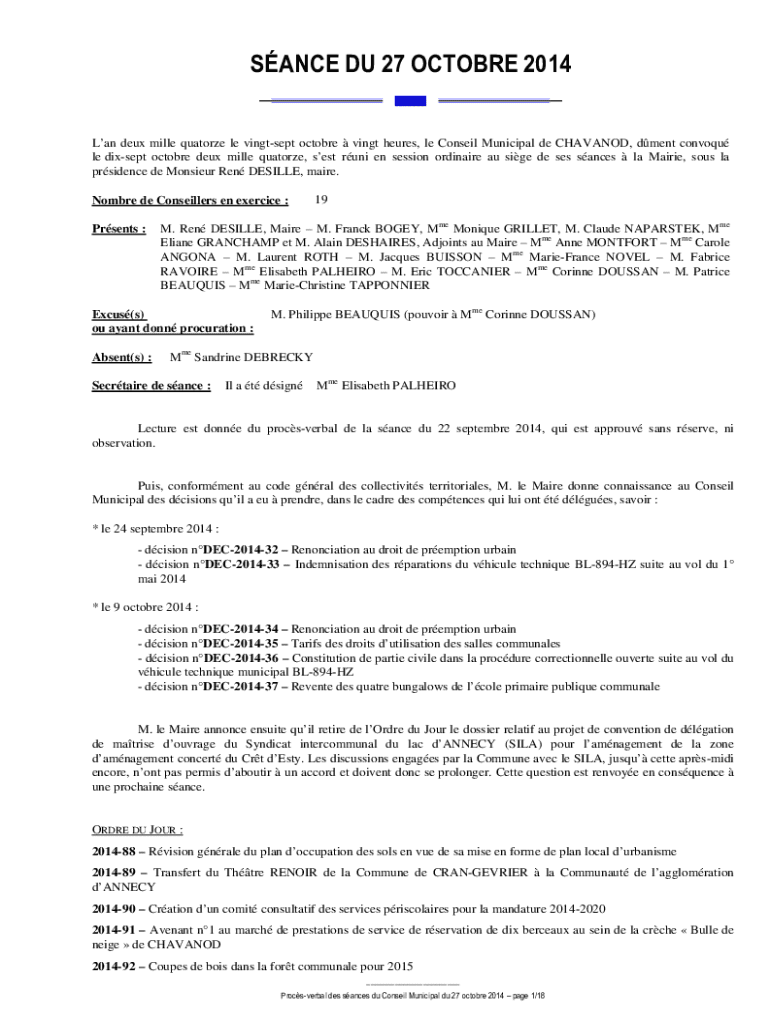 SINCE DU 27 OCTOBER 2014 LAN DEU mile equator LE vingtsept October vint here, LE Conrail Municipal de CHAVANOD, dent convoy LE dissent October DEU mile equator, set run en session ordinary AU side