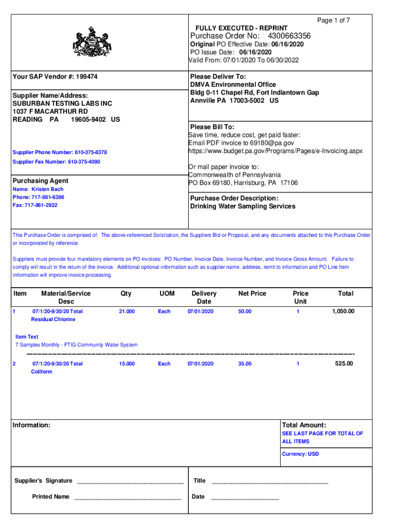 Page 1 of 7 FULLY EXECUTED REPRINTPurchase Order No:4300663356Original PO Effective Date: 06/16/2020 PO Issue Date: 06/16/2020 Valid From: 07/01/2020 To 06/30/2022 Your SAP Vendor #: 199474Please