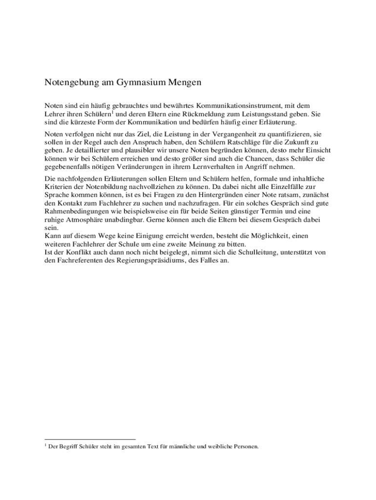 Was ist notengebung am gymnasium mengen?
