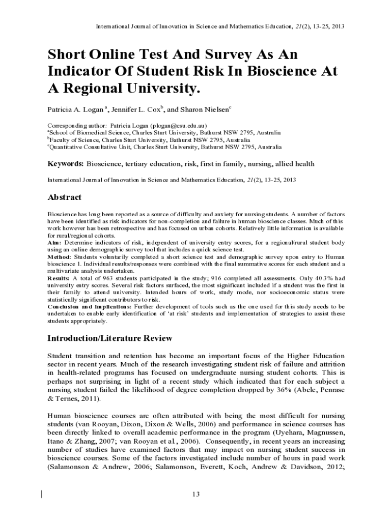 International Journal of Innovation in Science and Mathematics Education, 21(2), 1325, 2013Short Online Test And Survey As An