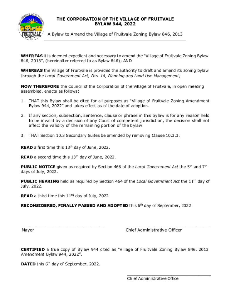 Get the free Bylaw 944, 2022