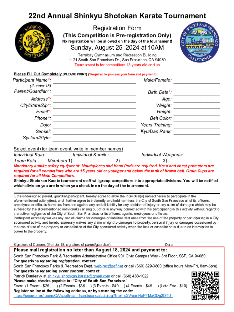 Get the free 22nd Annual Shinkyu Shotokan Karate Tournament Registration Form