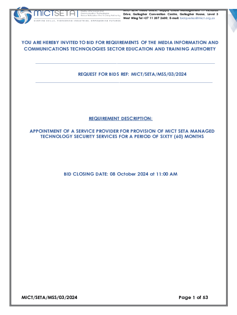 Get the free Request for Bids Mict Seta