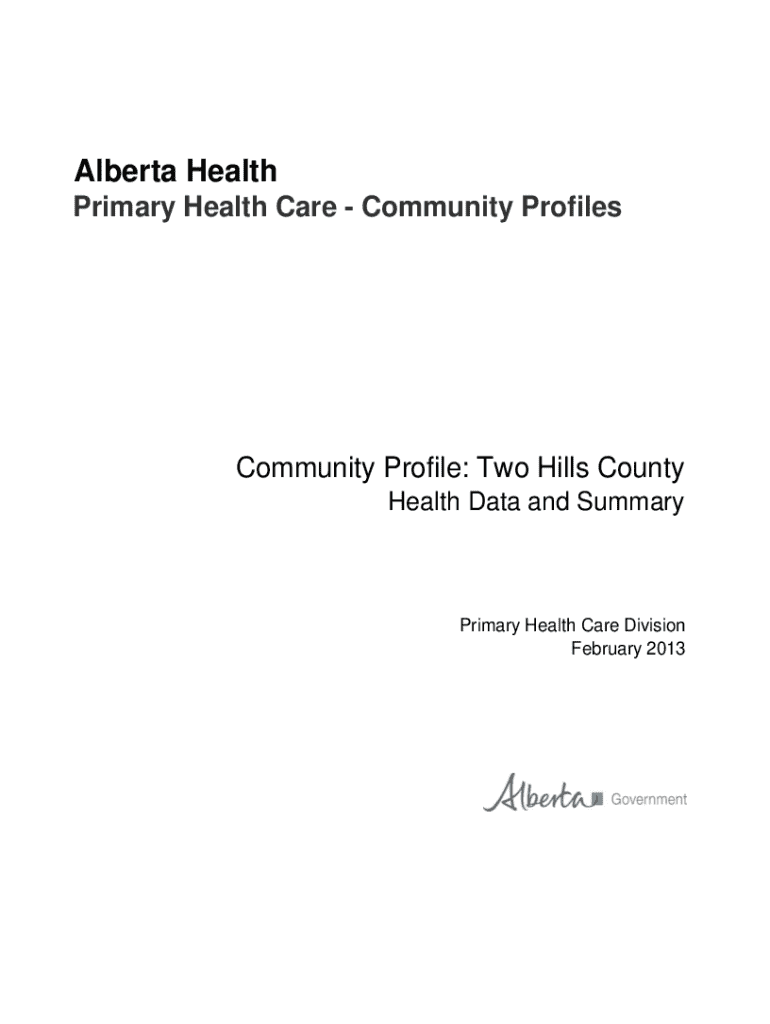 Get the free Community profile : Two Hills County health data and summary - open alberta