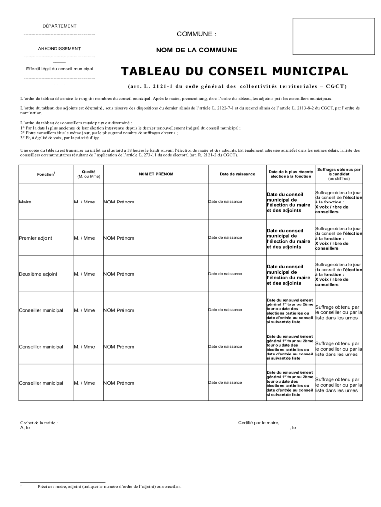 Les autorités municipales et les responsables de la gestion des collectivités doivent déposer nom de la commune.