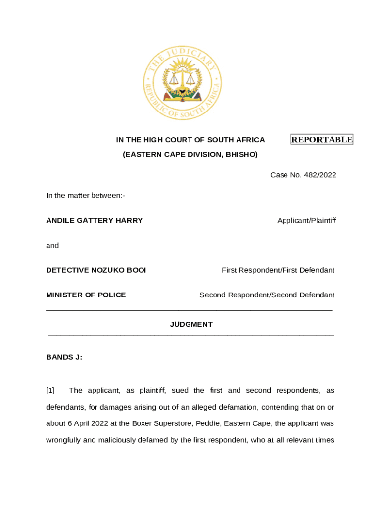 Get the free In the matter between:ANDILE GATTERY HARRY